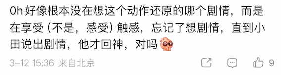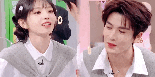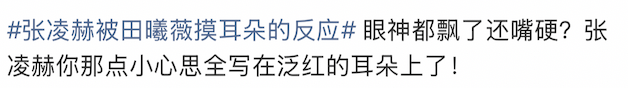 除了昵称,他们还有各种暗戳戳的小动作。张凌赫一言不合就盯盯,玩游戏时眼睛像长在了小田身上。面对小田又萌又魅的表现,他毫无抵抗力,小田毫无征兆勾住他下巴、眨巴大眼睛撒娇时,他不是扭头盯盯,就是被甜到笑不能自已。这些小动作,就像甜蜜的密码,只有他们自己能懂。
