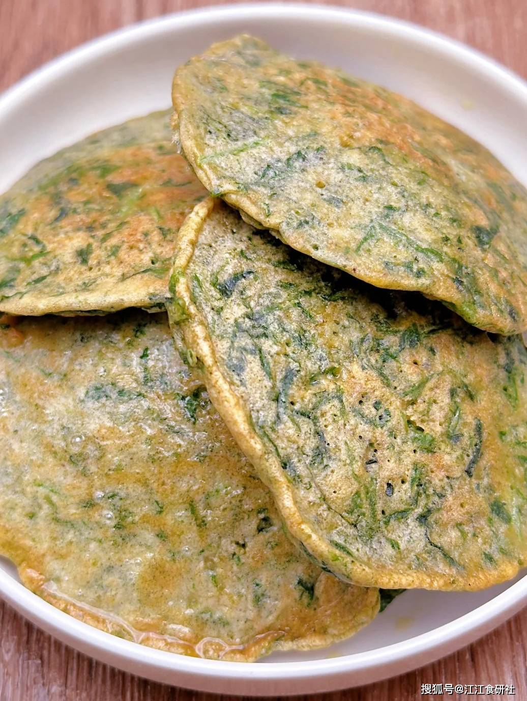 如果觉得甜汤略显单一,那么这款艾叶鸡蛋饼一定能满足您对香气和口感的双重追求。它将艾叶的清香、鸡蛋的醇香和面粉的麦香完美融合,煎制后外表金黄酥脆,内里软嫩咸香。