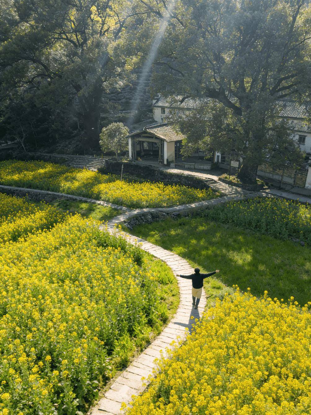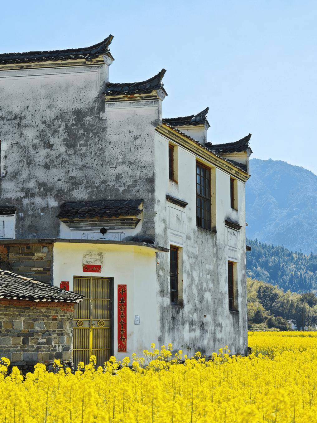 十堡村是一个极其原始的古村落,古建筑保留了极高比例的原始风貌。斑驳的白墙上爬满了岁月的痕迹,金灿灿的油菜花漫过墙根,黑白与明黄的对比,构成了最正宗的徽州底色。清晨,薄薄的炊烟从村子里的老烟囱里升起,与草木灰的味道、油菜花的芬芳混合在一起,牵着牛的农人从金色的花海中缓缓走过,让人仿佛倒流回了百年前的农耕时代。