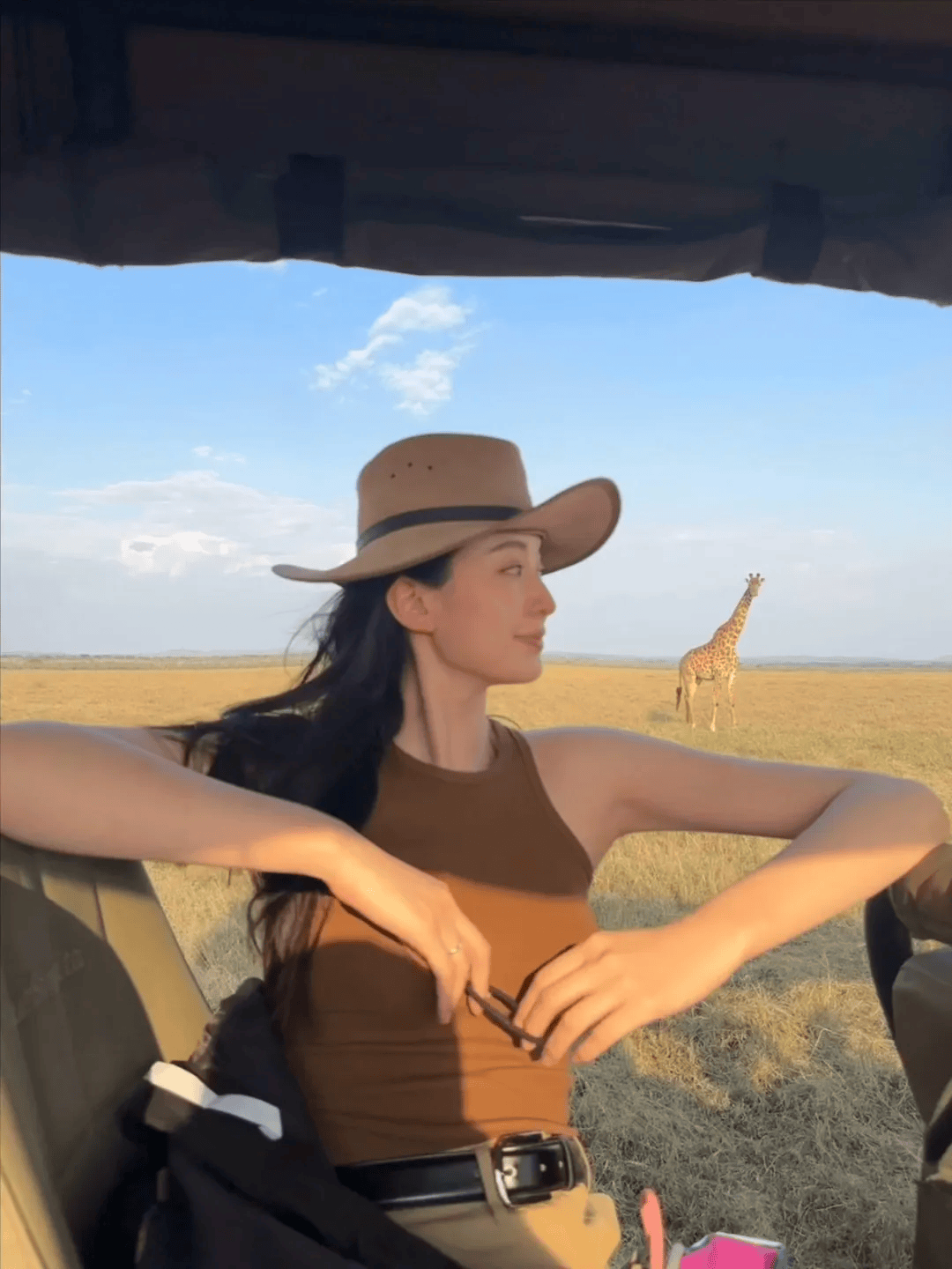 梁洁的度假穿搭则把甜妹感和松弛感平衡得恰到好处。第一套活力度假风,红色细肩带比基尼选色干净亮丽,衬肤色又吸睛。胸口立体白花设计是亮点,增添了甜美感。白色碎花泡泡短裤面料轻盈,廓形蓬蓬,少女感十足,上面的小花和字样营造出放松的度假氛围。浅蓝条纹棒球帽的搭配丰富了层次感,实用又时尚,在泳池边或院子里都能展现出活力甜美的状态。第二套轻熟甜酷风,粉色挂脖吊带上衣温柔有质感,立体玫瑰装饰和飘带增添浪漫灵动感。挂脖设计露出肩颈线条,显得挺拔。深棕色做旧牛仔短裙与上衣形成材质碰撞,平衡了甜腻感,多了酷酷的气质。高腰设计显腿长,珍珠项链和大圈耳环的配饰选择也很用心。梁洁的这两套度假穿搭,色彩呼应、材质碰撞,甜而不腻,为大家的度假穿搭提供了很好的参考。