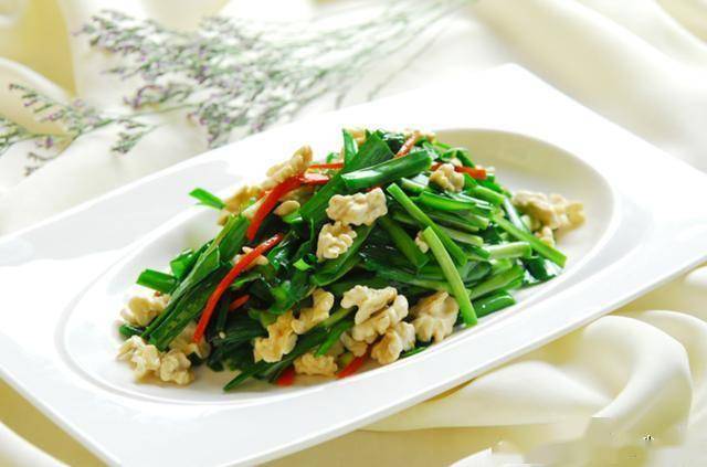 (2) 韭菜下锅后要大火快炒,保持其鲜嫩口感。