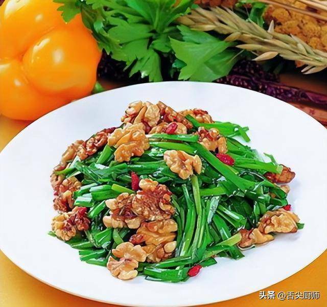 二、韭菜炒核桃仁做法