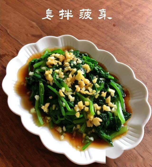 7. 搅拌均匀后,即可享用这道姜汁菠菜。