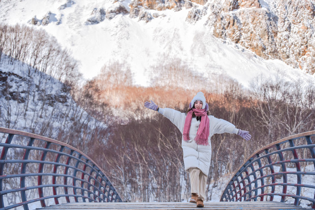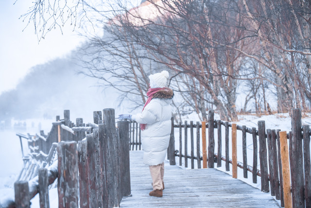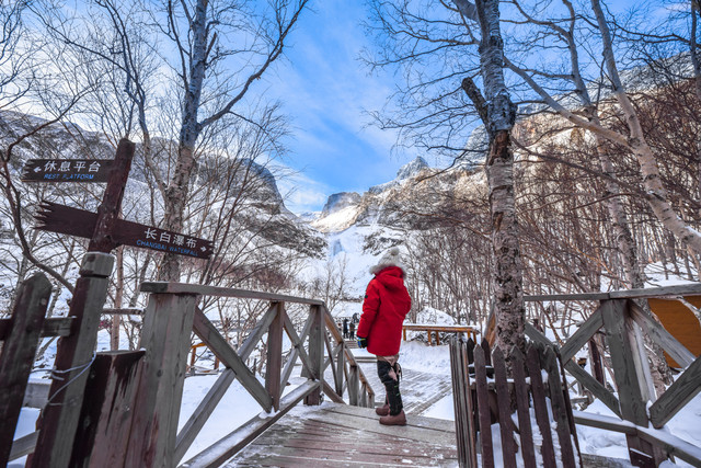 冬季长白山气温低,需穿戴羽绒服、雪地靴、帽子手套;