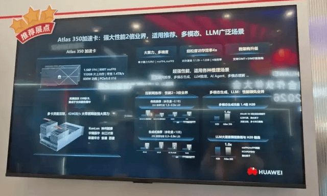 数据显示,Atlas 350的FP4精度算力为1.56P,带宽为1.4TB/s;功耗为600W。Atlas 350的单卡算力达到了英伟达H20的2.87倍,更是国内唯一支持FP4低精度的推理产品。