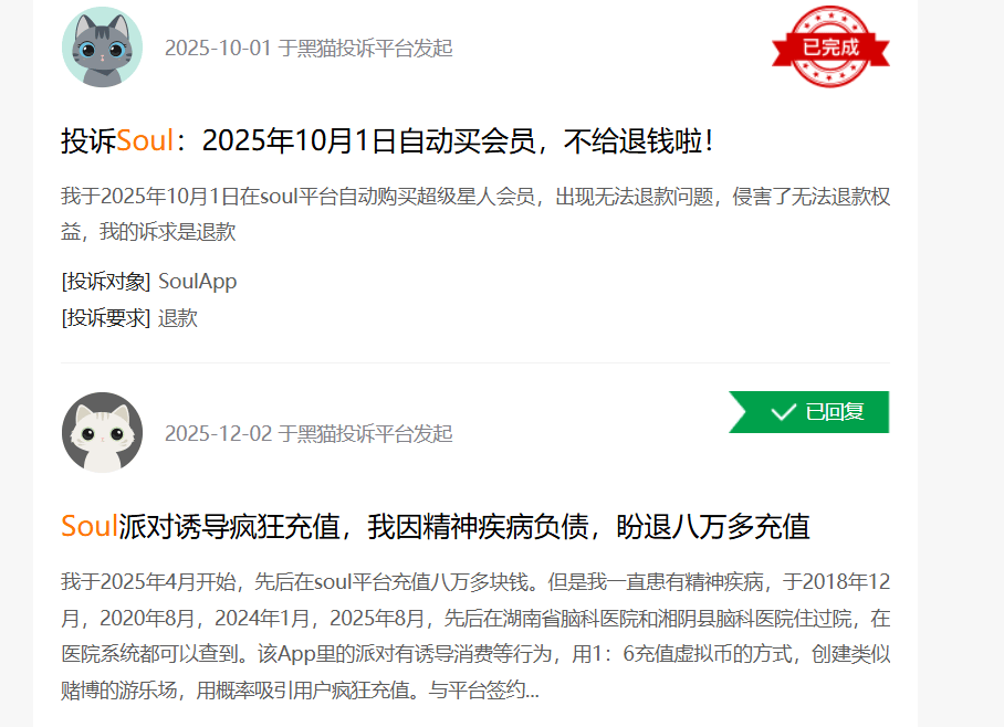 但在黑猫投诉等平台上,有不少用户对充值问题提出了投诉。比如有用户提到,“充值了虚拟币之后就把我设备封了,现在登录不上,无法使用里面的虚拟币”,且有用户提到其诱导充值、退款难等问题。 此外,还有用户提及其AI虚拟伴侣诱导消费的情况,比如提示“送礼开启语音”,或者“喂我吃冰淇淋”等诱导性语音互动,而这些礼物均需充值购买。 所以,尽管Soul以一份数据亮眼的招股书和“AI社交游乐园”的新故事,发起了第四次上市冲击,但其前路依然迷雾重重。 表面上看,它似乎踩准了“AI+社交”的浪潮,通过自研大模型和虚拟伴侣试图留住年轻用户。然而,其核心矛盾在于:当DeepSeek、ChatGPT这类通用AI能提供更纯粹、私密且低成本的“赛博亲密关系”时,Soul作为一个曾以“灵魂匹配”为卖点、如今却掺杂着复杂商业动机与潜在风险的“中间平台”,其独特价值正被不断稀释。更严峻的是,长期萦绕的“杀猪盘”争议与消费投诉,持续侵蚀着其赖以生存的信任基石。 |