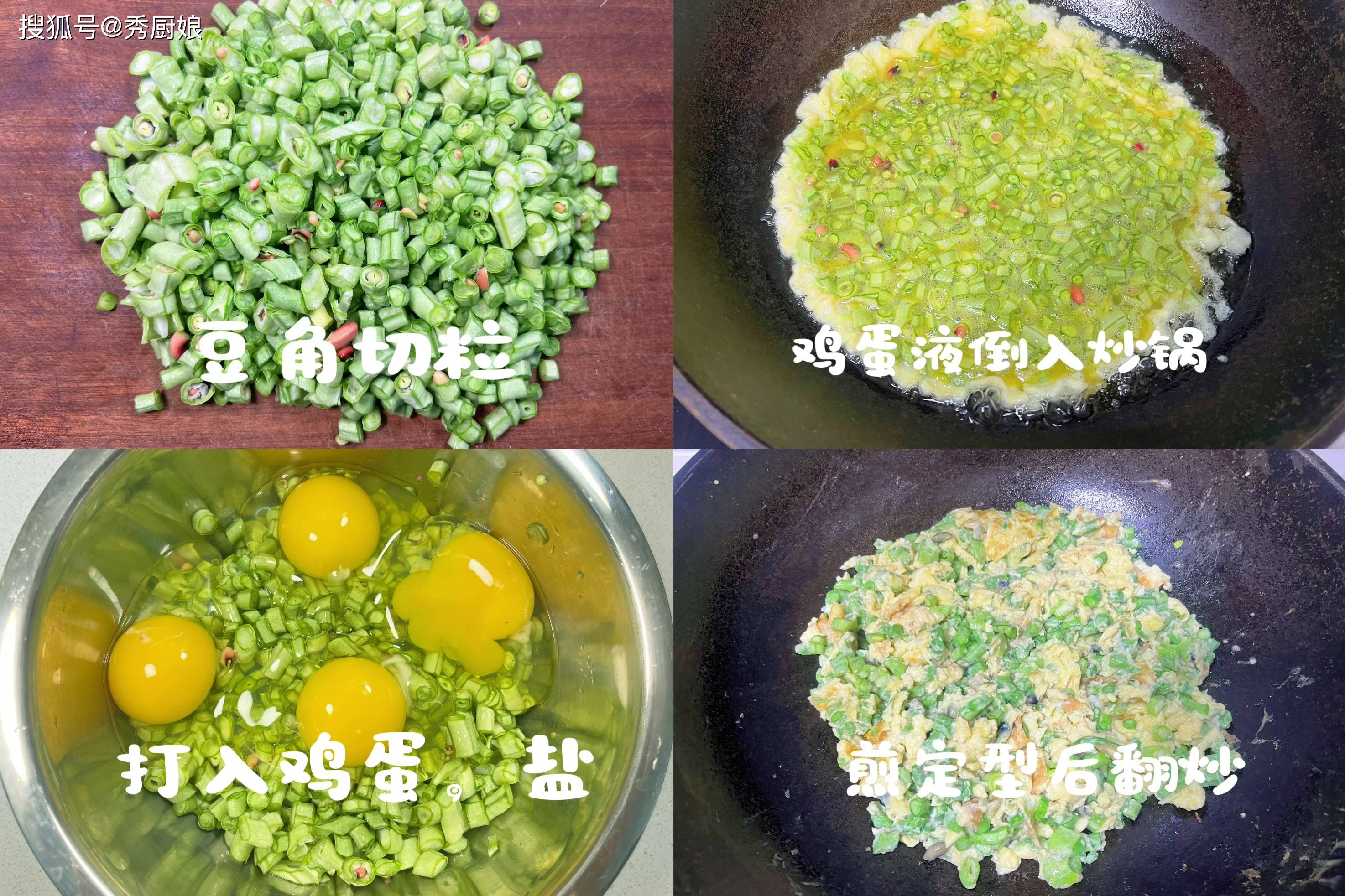三、豇豆炒蛋:快手家常的“下饭神器” 1. 豇豆切小丁,沸水中焯烫1-2分钟断生,捞出沥干。小米辣切圈(不吃辣可不放),鸡蛋打散备用。 2. 热锅凉油,爆香小米辣和蒜末,倒入焯好的豇豆丁,淋入蛋液,大火翻炒至蛋液凝固。