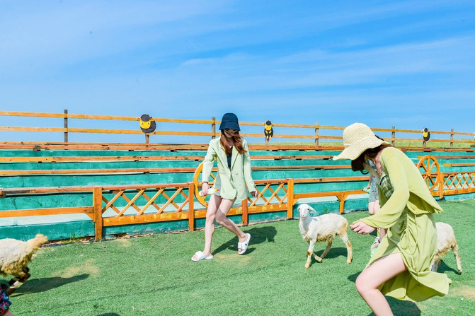 在快乐羊牧场,可以看小羊赛跑,与小动物亲密接触,还可以饲养羊羔,非常适合带着娃来玩。