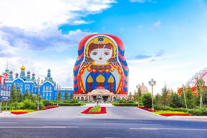 我们从巴尔虎驱车前往满洲里的套娃广场,这里又叫套娃景区,是国家5A级旅游景区中俄边境旅游区的重要组成部分,是全国唯一以俄罗斯传统工艺品——套娃形象为主题的大型综合旅游度假景区,是以满洲里和俄罗斯相结合的历史、文化、建筑、民俗风情为理念,集吃、住、行、游、购、娱为一体的大型俄罗斯特色风情园,景区由主题园区、主题娱乐、主题酒店三部分组成。