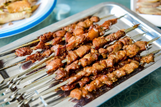 牛肉串、鸡肉串,超级超大,肉汁爆裂,个人认为牛肉串和猪肉串很美味,蘸酱是番茄酱。 没有肉,没有欢乐,只有吃完才是内蒙古真正的象征,哈哈哈!