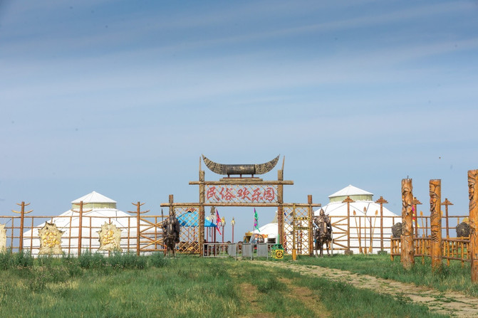 如今我们见到的巴尔虎部落已经不是原始的牧民栖息之地,而是专为游客建立的旅游景区。景区内分布错落有致的蒙古包,宛如镶嵌在草原上的洁白羊群,对于我们这些生活在城市里钢筋水泥建筑的人,简直是一道独具特色的靓丽风景线。