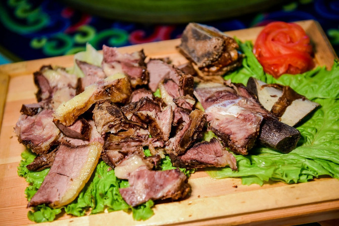烤全羊、烤羊排内蒙古在饮食上有着明显的北方特色,南方的小伙伴刚来可能不太适应,顿顿都有牛羊肉,一定会感叹,让生活无限贴近自然,是一件多么幸福的事儿!内蒙古大草原最著名的美食当属牛羊肉,烤全羊烤羊排也是必不可少的美食,没有之一,这里的烤羊烤法也不同,师傅们先用独特的手法将羊处理好,烤的时候把一种秘制的酱汁涂在羊身上面,烤好一层吃一层,再烤再吃。