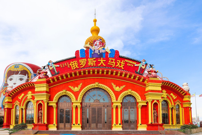 套娃景区俄罗斯大马戏演艺剧场采用欧洲巴洛克时期建筑风貌,古罗马斗兽场的圆形布局,直径超70米,集纳国际专业演员为您精彩上演驯兽、皇家马术、空中飞人、等高难度表演节目,让观众感受顶级马戏的真正魅力。
