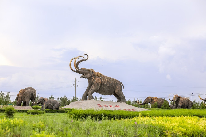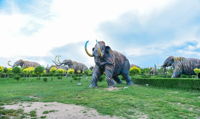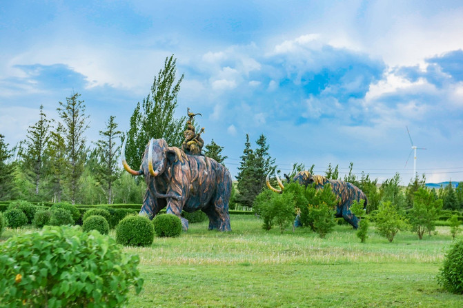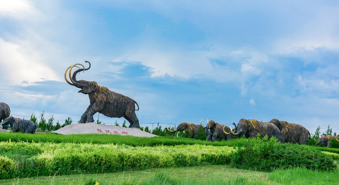 站在远处,我还以为是万年前消失的猛犸象突然出现在这里,门口巨大的猛犸象牙向世人展示着这里的雄伟与壮观。以扎赉诺尔"猛犸之乡"文化为主题的猛犸公园,被吉尼斯总部授予"猛犸之乡"称号。最大的一组猛犸象雕塑。