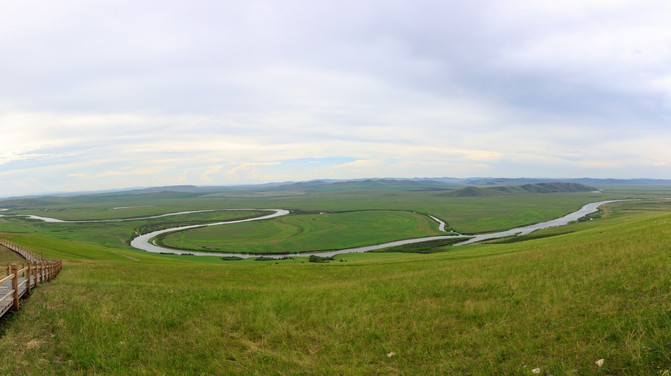 到达乌兰山,从山上往下看可以看到太极八卦图状的河流,这是额尔古纳河的一部分。河流绕成八卦的图案,然后向着远方伸展,“天人合一”也只有在这种景观下才会深有体会吧。