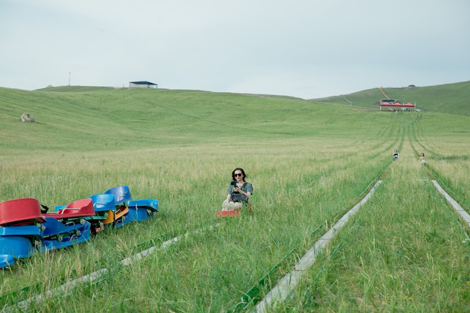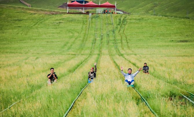 在乌兰山景区,除了自然行程的太极圈,景区内还修建了许多的娱乐设施,比较适合亲子旅行。 比如高速滑草,这种滑草比以前玩的都要刺激,全长800米,冲下来的速度能到70迈左右,太刺激了。