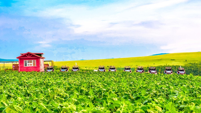 庄园又种植了一个面积500亩的小太极图,可在景区二号观景台拍摄全景。庄园里有里环岛路,全部沿中俄边界,可骑自行车、徒步、坐俄式马车、电瓶车尽览两国风光。环岛道路曲折起伏,又是汽车越野、马拉松赛的天然赛道。