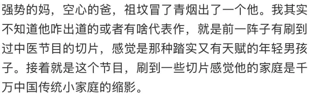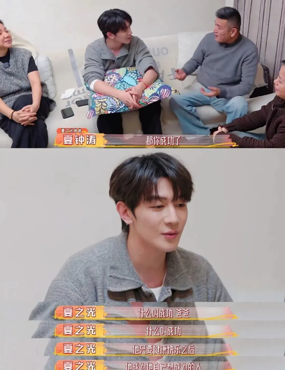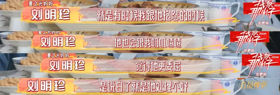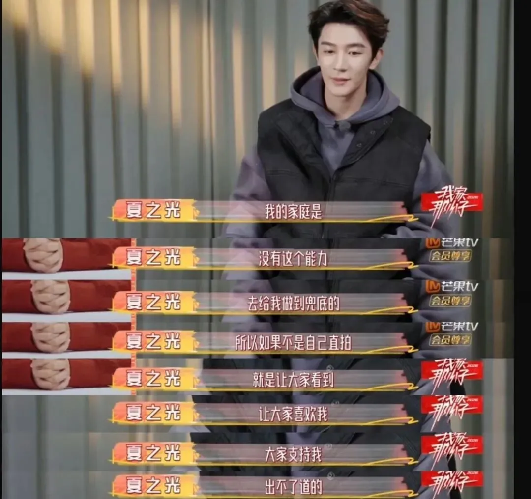 好窒息的家庭,堪比砒霜👇 没疯掉就已经不错了👇 别录了👇 说的就是夏之光, 最近播出的《我家那小子》,家庭聚餐环节,夏之光谈及刚出道时,被父母拉黑长达一年半的往事, 亲生的,一年半不联系,多少有点小众了更力竭的是,拉黑仅仅因为当时他交不起话费,向父母求助, 或许在他妈妈看来,已经跟「X玖少年团」(15年《燃烧吧少年》出道,当时夏之光15岁,龙丹妮的团,里面最有名的是肖战,去年解散)出道, 每个月有三千块工资足够了, 她不明白钱花哪儿了, 结合节目里,他妈妈说给500都让他记得还, 能看出在经济方面,父母对夏之光还蛮严苛的,也理解了为什么之前夏之光说自己16岁就不跟家人要钱了, 按理来说十几岁的年纪,每个月三千块钱,如果公司包吃包住,似乎也能过得去?但实际上,这3000块并不能按时到账... 更「雪上加霜」的是,夏之光有几年时间一直在准备艺考, 众所周知这个考试有多烧钱,全国到处跑,路费就占大头,为了省路费,上课的时候自行车地铁来回切, 甚至下雨也不舍得打车, 吃饭都是十几块钱那种, 泡面更是家常便饭, 为了省住宿费,都是住青旅的, 后面录综艺住青旅,同团的焉栩嘉甚至都不知道青旅是啥, 张颜齐说差不多九十块一晚, 夏之光脱口而出他住的80... 翟潇闻甚至不相信有这么便宜的地方, 19岁参加《创造营》作为R1SE成员重新出道,采访被问到没成团咋办,他说赶紧接几个商演, 因为没钱交房租了 一直到2025年之前,夏之光的经济状况都不算很好,24年的目标是换一辆新车, 结果不知道什么原因把车卖了, 赵磊节目里和他借表参加红毯, 他说表也卖了, 还说买表就是因为保值,没钱的时候可以卖了… 直到25年他和哇唧唧哇解约,签了于正,有了片约,经济状况应该才有所好转, 再说回「电话费拉黑」这件事,或许妈妈也有怄气的成分,但父亲的回应显然更刺骨,儿子时隔多年亲自撕开自己的伤疤,说当时的自己「孤立无援」, 父亲的态度却是,「你没和我们沟通,怪我们吗」 没有心疼,取而代之的是冰冷的反问与指责,就... 但真的是儿子不想沟通吗?根据夏之光的说法,自己的成长过程中,父亲几乎处于一个「缺位」的状态, 很少主动和孩子建立亲密链接, 或许说出那句惹众怒的「怪我们吗」之前,父亲并非没有愧疚的成分,只是家长的尊严凌驾于道歉之上,于是连一句「你辛苦了」都变得格外烫嘴,缺乏沟通,羞于表达,或许是每个东亚家庭的通病,但问题的根本或许还是父母与子女之间的「代际认知偏差」。比如各种人生观,关于结婚生子,生于70年代末的夏之光父母(妈妈48岁,爸爸53岁), 早婚早育,24岁生了他,即便自己也承认,在还是孩子的年纪就要承担起母亲的责任, 知道养育一个孩子不容易,甚至在明知儿子不想过早结婚的情况下, 还是会旁敲侧击,让他提前体验当爸爸的感觉, 说自己以后要当漂亮奶奶, 问儿子想生几个, 对着全国观众发誓,以后儿子结婚了,家务活自己来, 这些有意无意的话术,似乎都在提醒夏之光,你可以考虑结婚了,父亲更是传统,一直给他灌输早点结婚的思想, 最常挂在嘴边的一句话是,如果你当初不做这行… 在他的假定情境里,不做这一行,儿子就能早点结婚...甚至和很多家长一样,他希望儿子留在老家,当个老师,有份体面且稳定的工作, 完成人生kpi的同时,获得世俗意义上的圆满,而00年出生的夏之光,显然是逃离这种传统秩序之外的存在,没有「社会时钟」的裹挟,比起成年人的「任务感」,他更注重自己的感受,把自己放在第一位, 对于婚姻,也并非不想结,而是以爱为前提, 如果没有喜欢的人,那也不要为了结婚而结婚, 对于生孩子,也并非一定生,而是以女生为主, 在他看来,生育是两个人的事情,不是任务, 就算要孩子,也是在自己足够强大,有责任感和担当的时候要, 也会给孩子足够的自由度, 这一套建立在平等和尊重之上的健康婚育观,相比于父母那套,显然更有温度,是结合了深度思考的人生体系,再往前追溯,这种「代际认知偏差」,是在夏之光(甚至可以说所有典型东亚小孩)很小的时候就埋下的,很多东亚家长,会强行灌输「为你好」的教育理念,而孩子并非接受,这是他们「冲突」的开始, 夏之光的妈妈 ,打着「为你好」的名义奉行「棍棒教育」小时候不听话,就要揍一顿, 考试考得不好,也要揍一顿, 长大后,父母在亲戚面前「炫耀」自己的教育学, 却被夏之光「撕开」体面,他说不是自己想学,而是害怕被打, 知道自己的妈妈很要强,害怕让她失望,所以拼命活成她理想中的样子, 这种「被打焦虑」发展成应激,长大后回家,带的狗狗在地上撒尿,他第一反应也是害怕, 而妈妈也是第一时间抡起拳头, 某种程度上,这种压制并不会随着时间消失,那是刻在骨子里的,父亲则是提供尽可能优渥的物质条件去「托举」儿子,夏之光的家境非常普通,父母经营一家小旅馆,父亲还在外面开车, 望子成龙的心态让他们在夏之光身上投入了很多教育成本,小时候他上过十几种兴趣班, 那些后天培养的天赋,对他来说是一种负担, 而父母也无法理解儿子,对夏之光妈妈来说,我也在牺牲,陪你一起吃苦, 对夏之光爸爸来说,如果没有自己的托举,你怎么能获得如今的成功呢? 父母在等孩子的感激,孩子在等父母的道歉,又一次具象化了。但其实,不止对孩子「强硬」,处理夫妻关系,他们也很「强势」夏之光父母在他小时候经常吵架, 一点小事就能引爆, 双方没有沟通