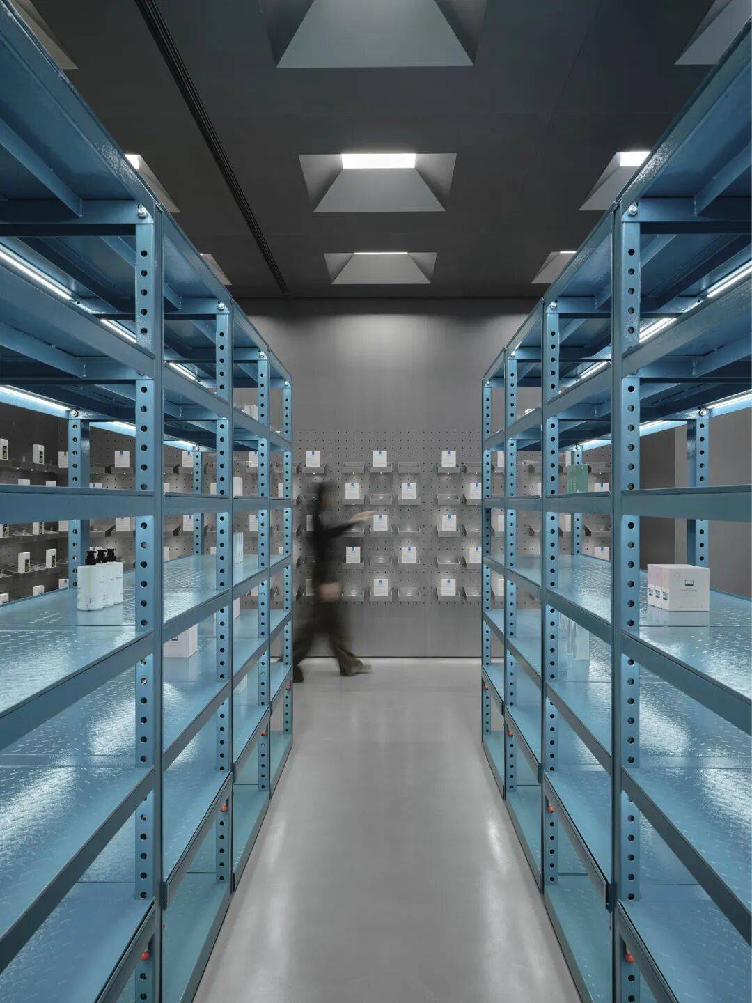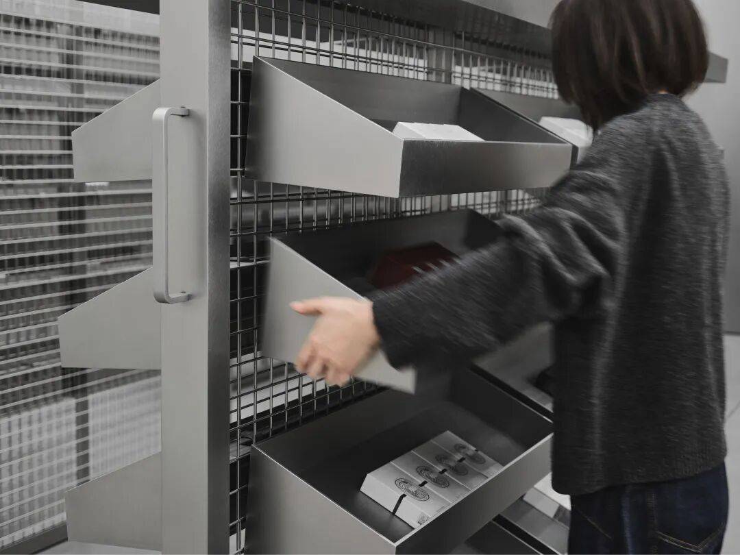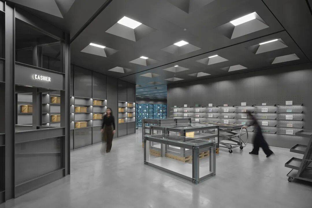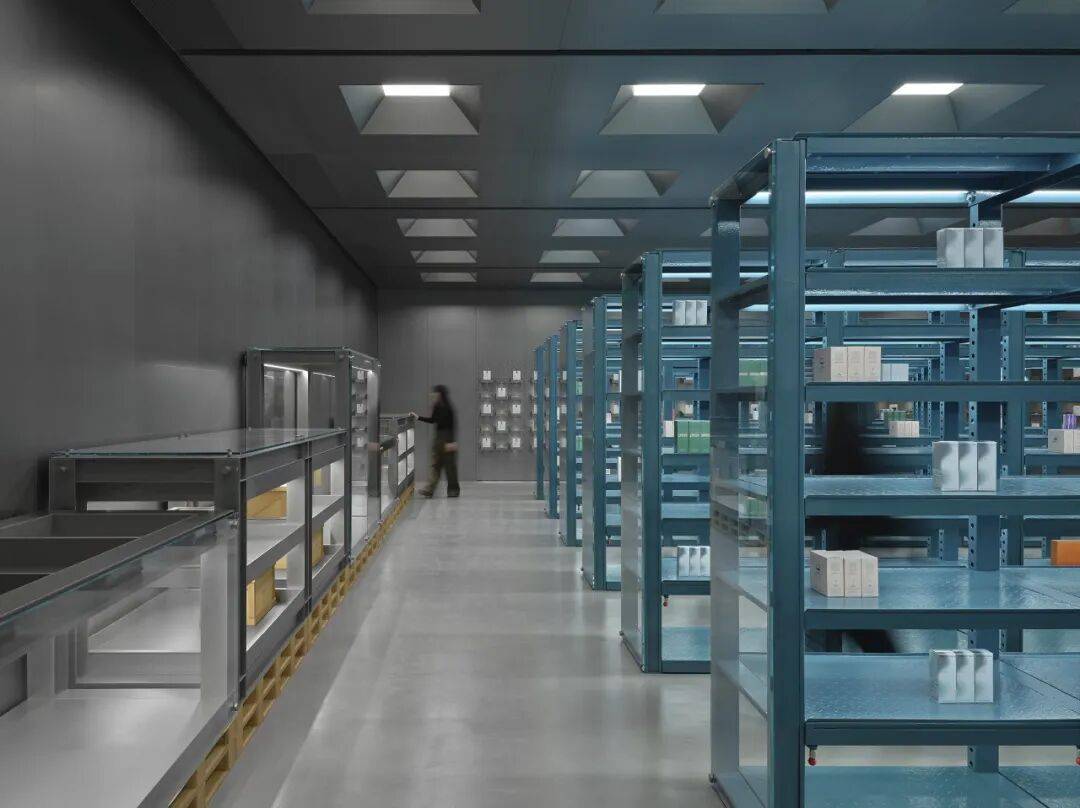 ©Seth Powers 全新的HARMAY話梅北京合生汇旗舰店延续了这一探索与对话。项目以艺术体系中最具功能性的空间类型—“藏品仓储”为研究对象,并将其转译为一种最为普遍、也最具公共性的行为:购物。通过模糊艺术仓库与零售典藏空间之间的界线,设计提出一种新的可能性:产品的选择,本身可以是一种策展行为;个人需求,亦可转化为一种收藏实践。在货架上寻得一款产品,不再是单纯的消费行为,而是一种有意识的自我建构过程,围绕未来的身份与生活方式,逐一甄选所需之物。