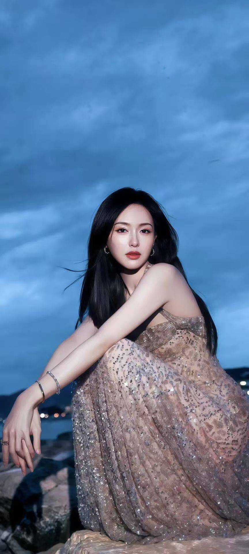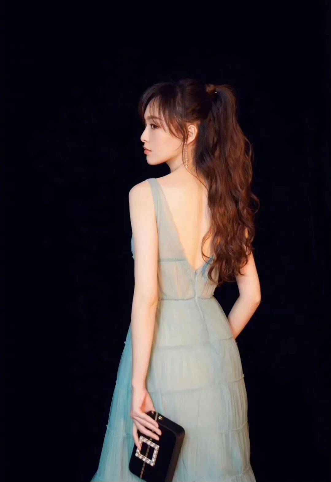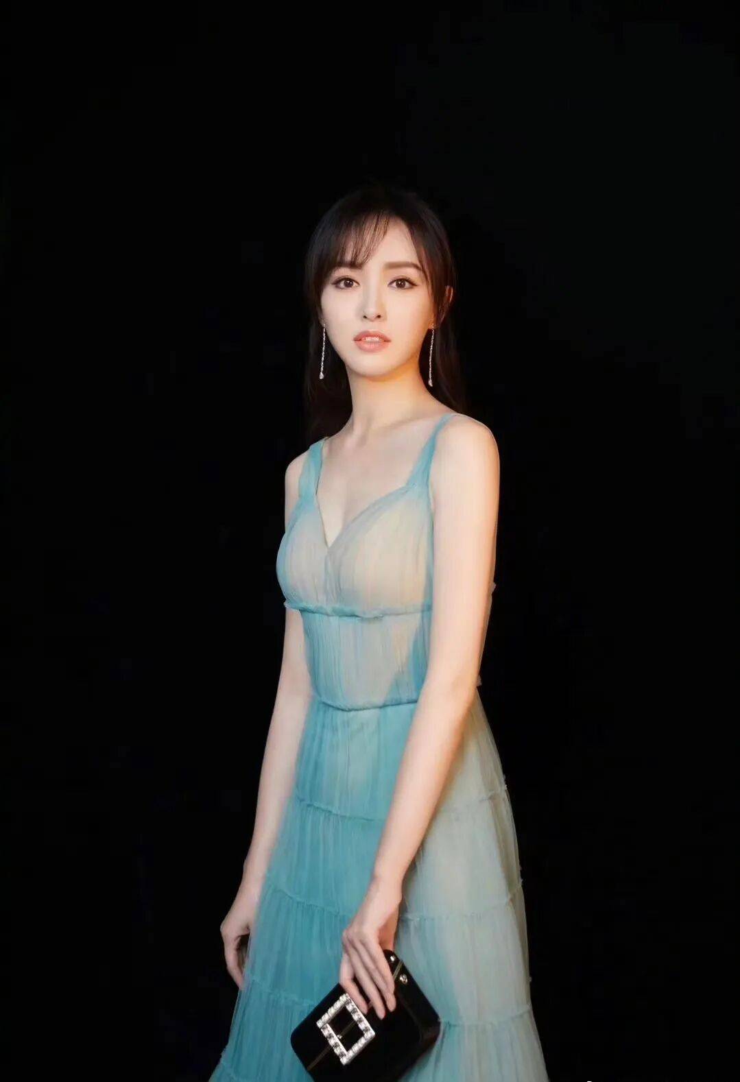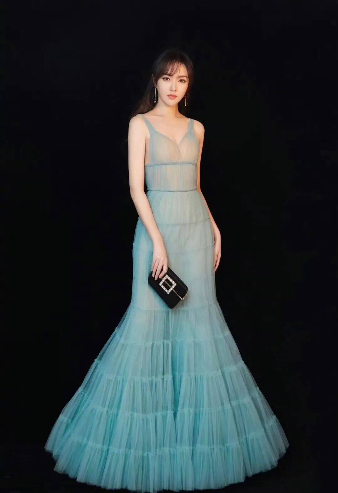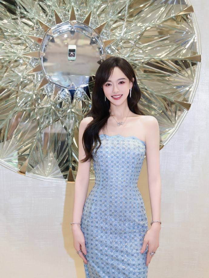 冰蓝抹胸裙,唐嫣的这款穿搭又把高级感与少女感平衡到了极致,完美诠释了 “清冷又温柔” 的东方审美。