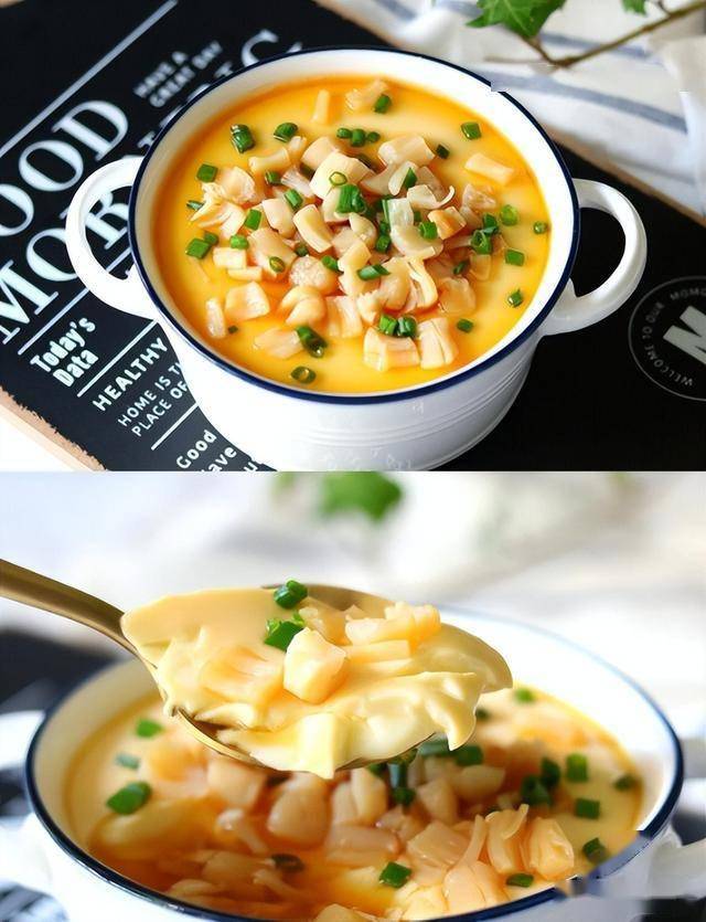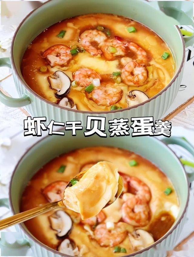 步骤 1. 干贝提前用清水泡发,泡软后撕成细丝;虾仁洗净,用厨房纸巾吸干水分备用。 2. 鸡蛋打入碗中,加入盐,搅拌均匀,然后慢慢倒入温水,边倒边搅拌,鸡蛋液和温水的比例为1:1.5左右。 3. 将搅拌好的鸡蛋液过筛,滤去表面的浮沫,这样蒸出的鸡蛋会更加细腻嫩滑。 4. 在鸡蛋液中加入干贝丝,轻轻搅拌均匀。 5. 蒸锅中加水,水开后放入装有鸡蛋液的碗,盖上锅盖,小火蒸8 - 10分钟,至鸡蛋液表面凝固。 6. 打开锅盖,在鸡蛋液表面放上虾仁,再盖上锅盖,继续蒸3 - 5分钟,至虾仁熟透。 7. 取出蒸好的鸡蛋,淋上生抽和香油,即可享用。 温馨提示 (1) 泡发干贝的水不要倒掉,可以用来调鸡蛋液,增加鲜味。 (2) 鸡蛋液过筛这一步很重要,不要省略,否则蒸出的鸡蛋表面会有气孔。 (3) 蒸鸡蛋时要用小火,避免大火导致鸡蛋表面出现蜂窝状。